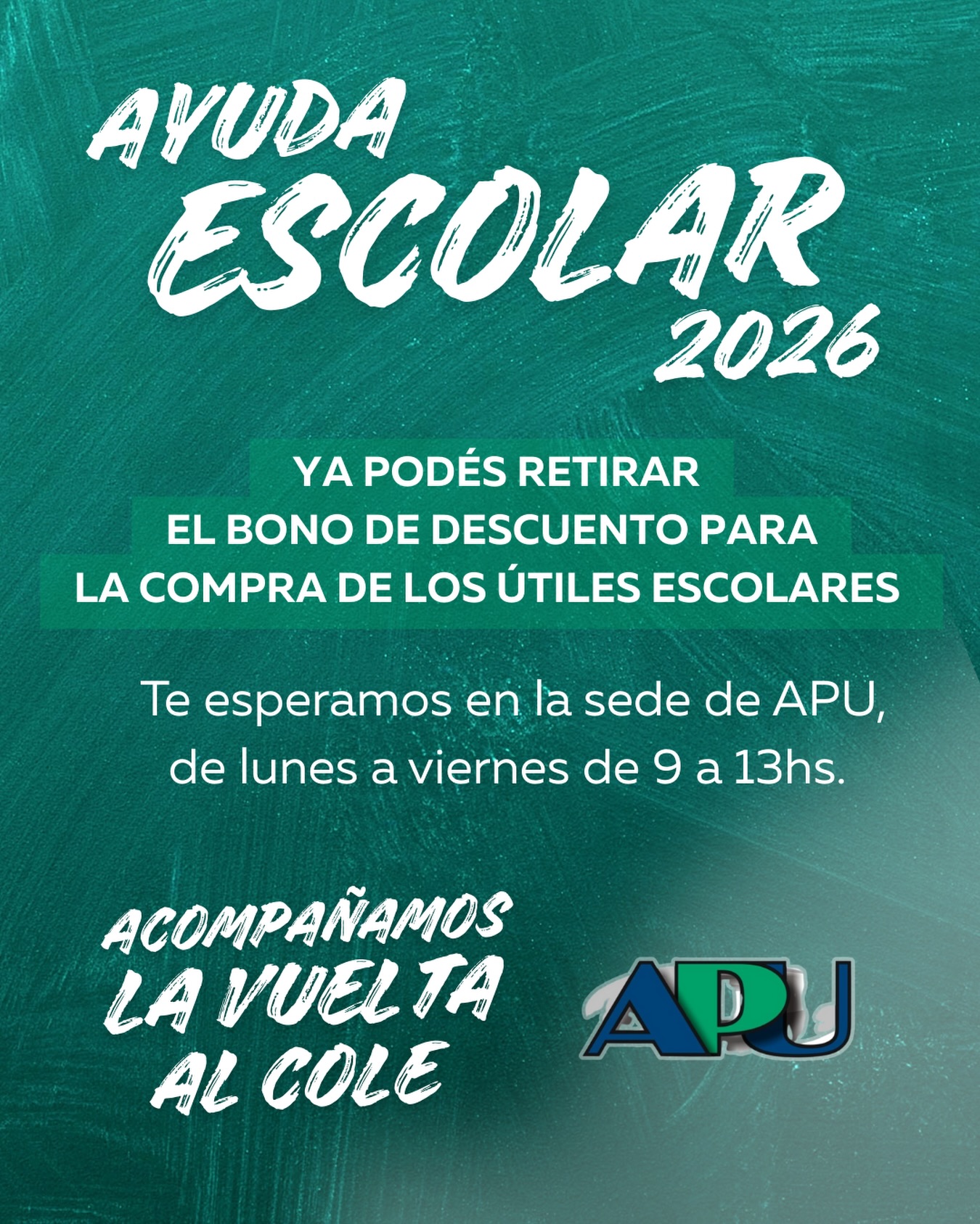 La Asociación del Personal de la Universidad Nacional de Mar del Plata (APU) anunció a través de sus redes sociales que «a partir del Lunes 5 de Enero los afiliados y afiliadas podrán acercarse a la sede de APU para retirar el Bono de descuento de la Ayuda Escolar 2026».