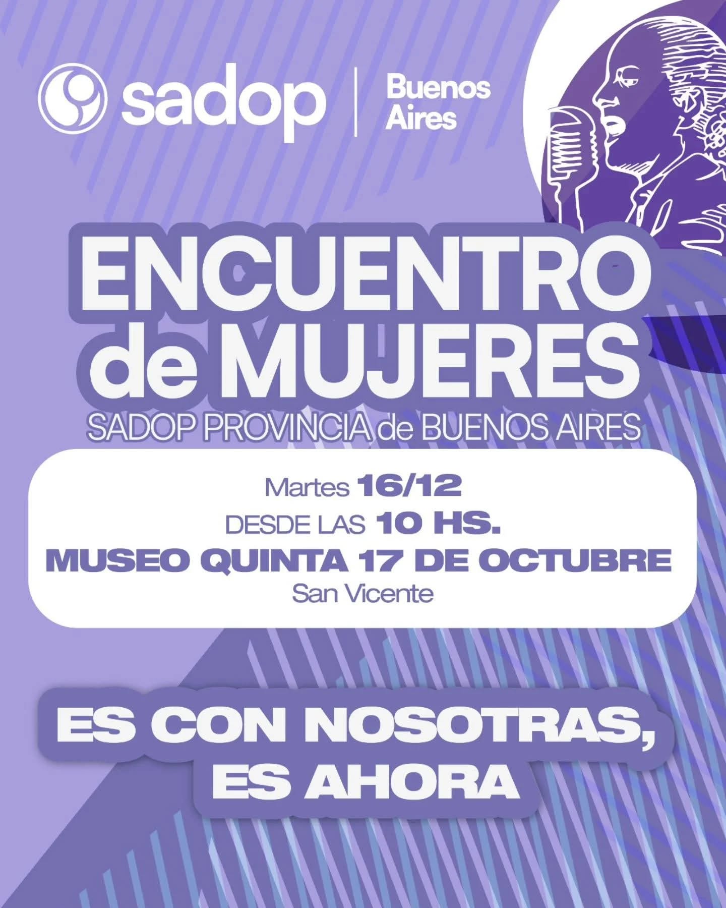 El Sindicato Argentino de Docentes Privados (SADOP) Provincia de Buenos Aires anunció la realización de un «Encuentro de Mujeres de SADOP» el próximo Martes 16 de Diciembre.