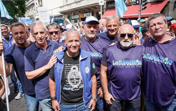 Integrantes de la Asociación Bancaria seccional Mar del Plata participaron de la masiva movilización contra la Reforma Laboral del gobierno nacional, junto a su Secretario General Nacional, Sergio Palazzo.
