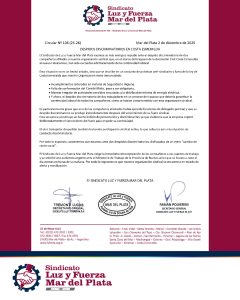 El Sindicato Luz y Fuerza Mar del Plata hizo público un grave hecho de despidos discriminatorios en Costa Esmeralda: «En el marco del traspaso de la Asociación Civil Costa Esmeralda al nuevo Fideicomiso, dos compañeros afiliados a nuestra organización sindical han sido excluidos arbitrariamente de la continuidad laboral».