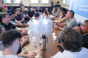 El Secretario General del Sindicato de Cadetes, Motoristas y Mensajeros (SICAMM), Alan Veltri, participó junto a Sergio Jiménez y otros dirigentes del sector de todo el país, de un encuentro con los Diputados Nacionales Vanesa Siley, Germán Martínez y Eduardo Toniolli.