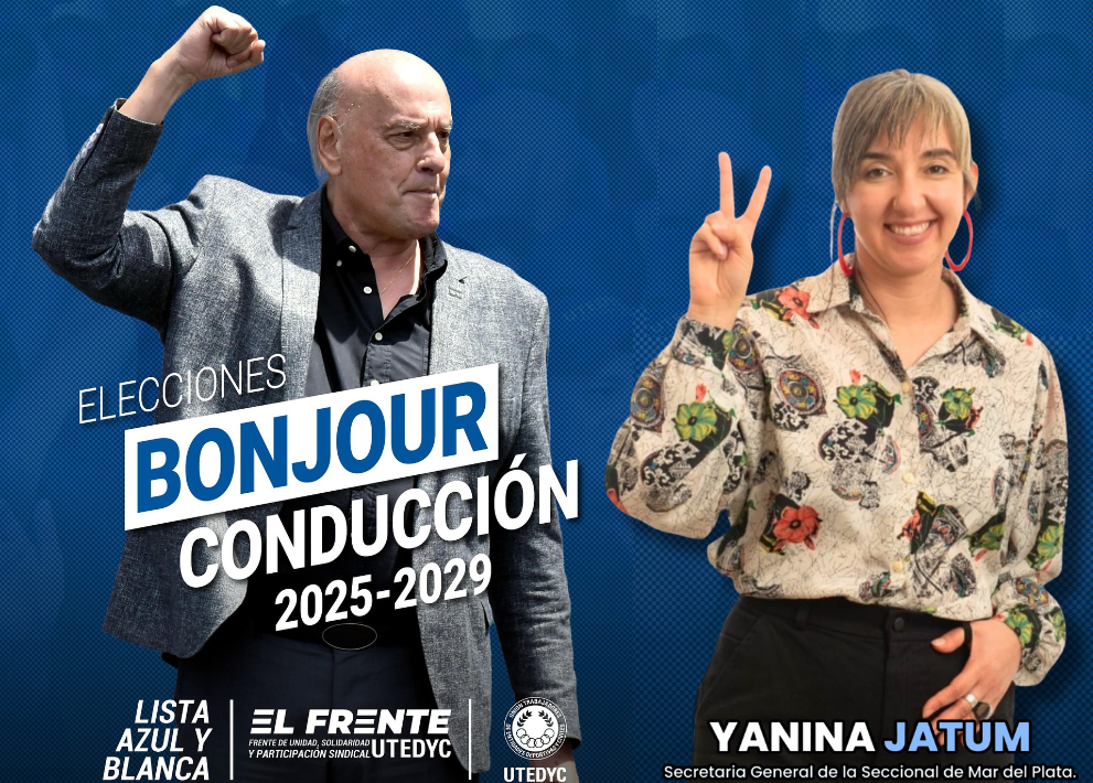 En el marco de las elecciones que realizará la Unión de Trabajadores de Entidades Deportivas y civiles (UTEDyC), la seccional Mar del Plata anunció la candidatura de Yanina Jatum a la reelección como Secretaria General, al mismo tiempo que acompañaron la renovación de Bonjour como máximo dirigente a nivel nacional para el periodo 2025-2029.